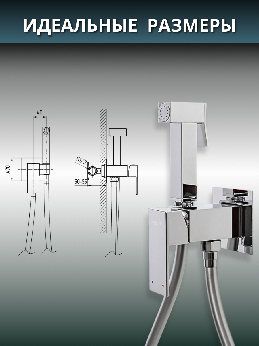 Гигиенический душ со смесителем AVS Cube хром