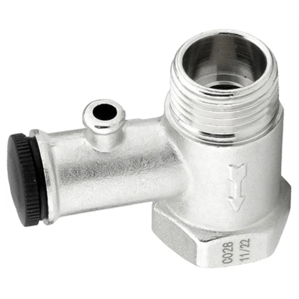 Вид: пружинный; Тип резьбы: 1/2F-1/2M; Мах рабочая температура: 120 град; Мах давление: 7 бар; Давление срабатывания: 7.5 бар; Тип присоединения входного патрубка: наружная резьба; Тип присоединения выходного патрубка: внутренняя резьба; Диаметр резьбы входного патрубка: 1/2 дюйм; Материал уплотнения: EPDM; Материал запорного органа: EPDM; Рабочая среда: вода, водяной пар, 50% раствора гликоля.