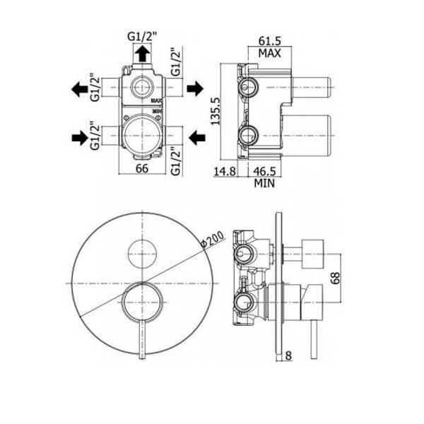 Наружняя часть смесителя;скрытая монтажная часть.