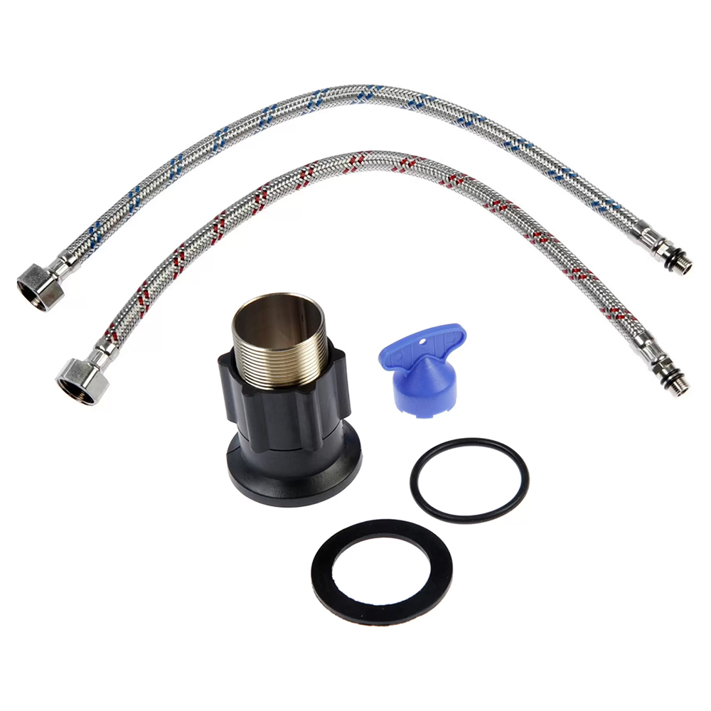 смеситель; комплект креплений; комплект гибкой подводки; инструкция.