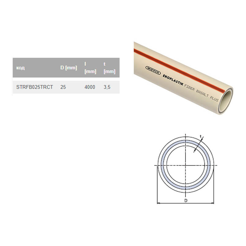 Труба Fiber Basalt Plus D 25 STRFB025TRCT 60 м/уп