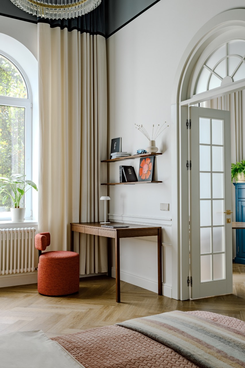 Досталась нам в полуразрушенном виде. Заказчик приобрел этот объект не для постоянного проживания, чтобы останавливаться на выходных, для гостей друзей и родственников. В проекте он хотел увидеть немного французской классики, немного пражского стиля, так как долгое время жил и учился в Праге. Также хотел добавить современного и скандинавского комфортного для жизни дизайна.